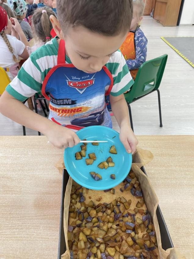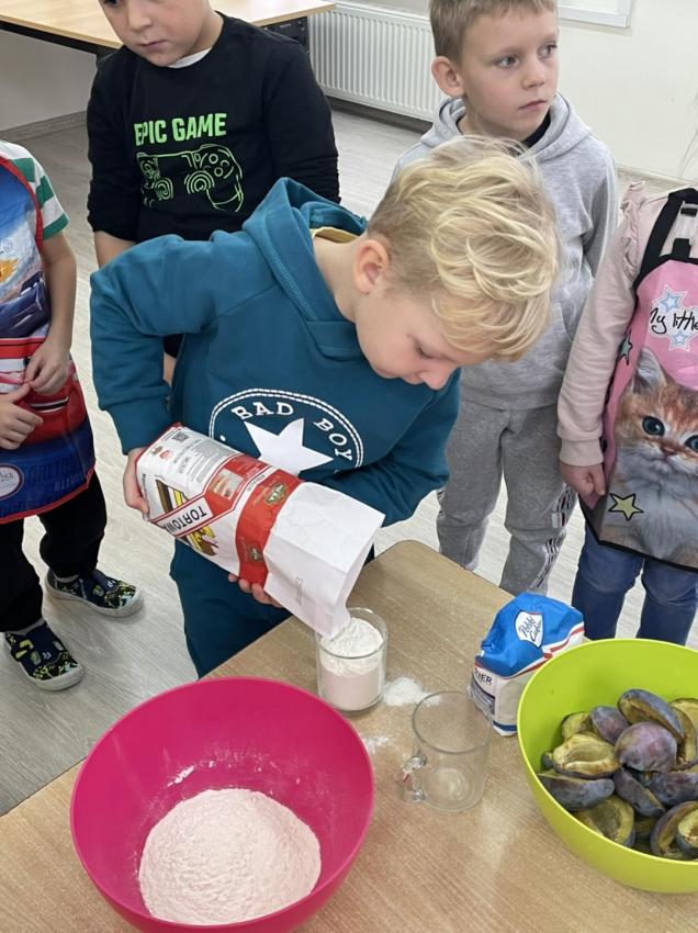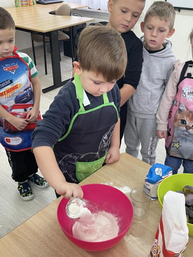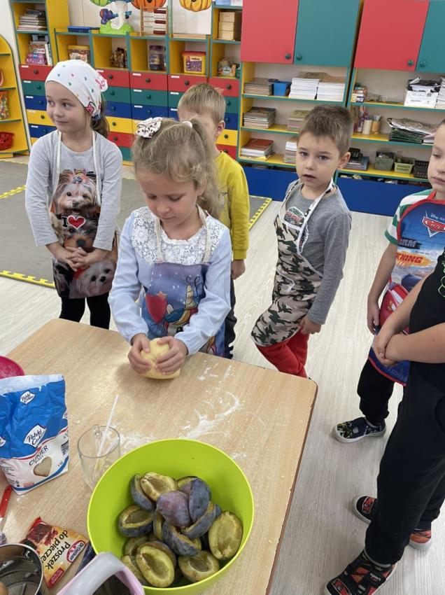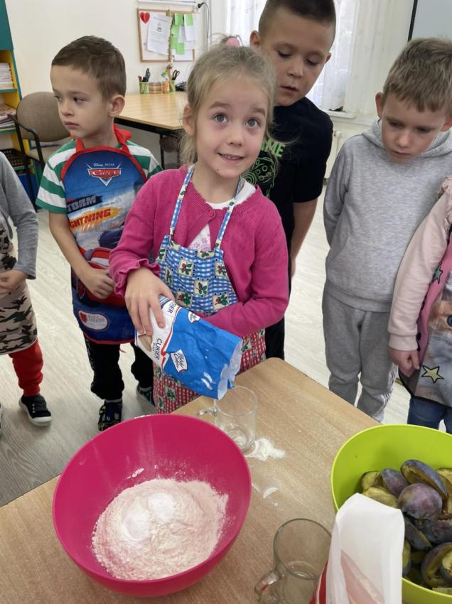 Śliwkowke ciasto w wykonaniu dzieci z grupy 5-6 latków